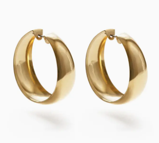 We've salvaged these vintage dead-stock hoops and polished them, plated them in 14k gold. They have surgical steel posts. They are big sexy 70's statement. Made in the USA in the 70's.