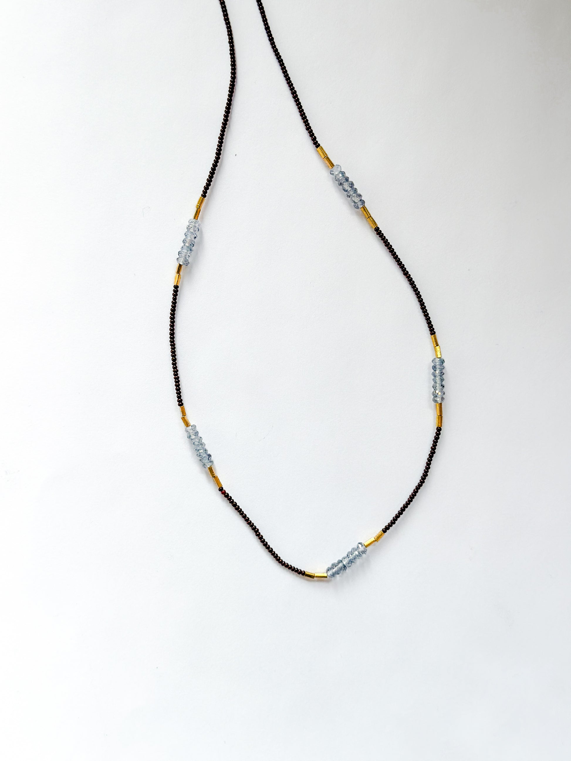 DEBBIE FISHER | Necklace Dark Brown Seed Beads, Iolite, and Gold Fill Beads