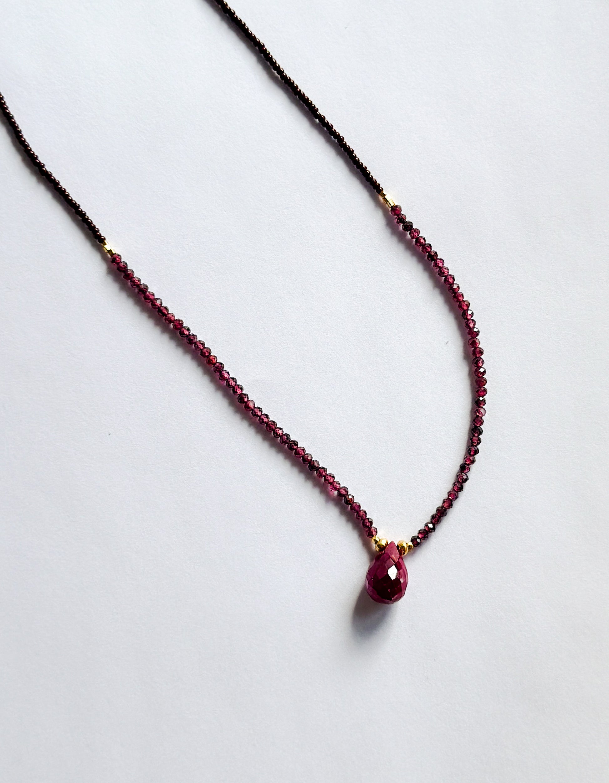 DEBBIE FISHER | Necklace of Brown Seed, Garnet, Gold Vermeil and Ruby Beads