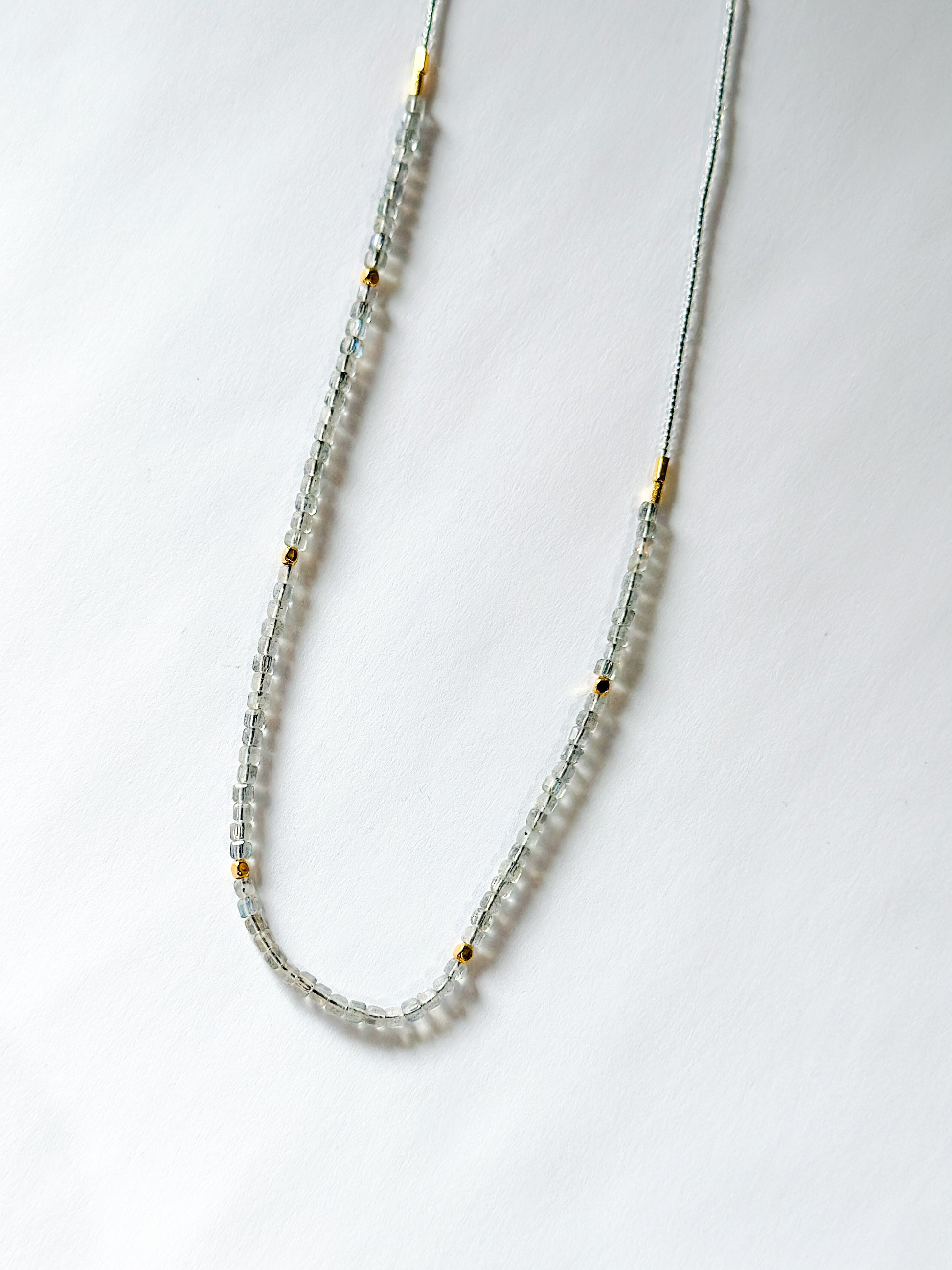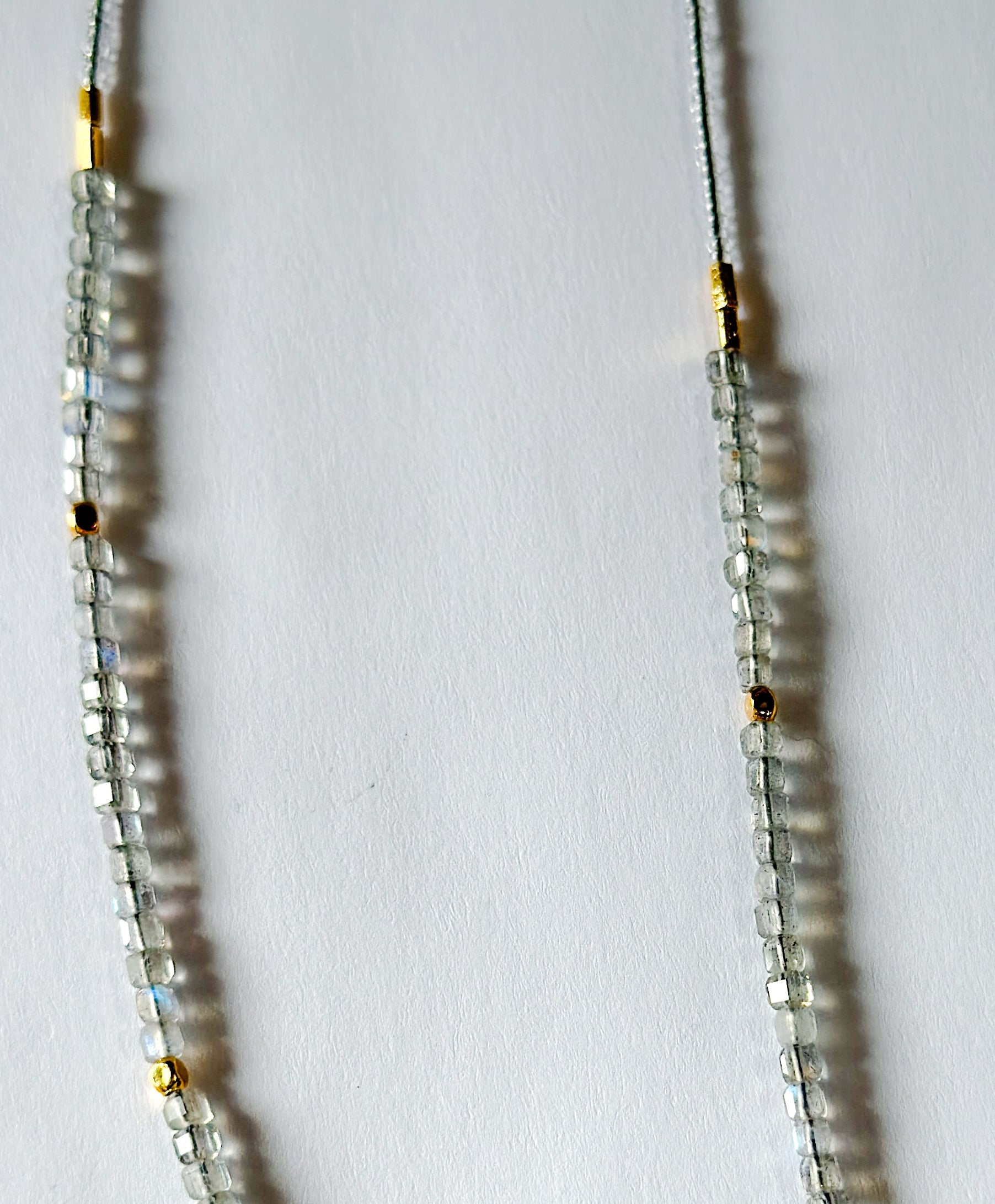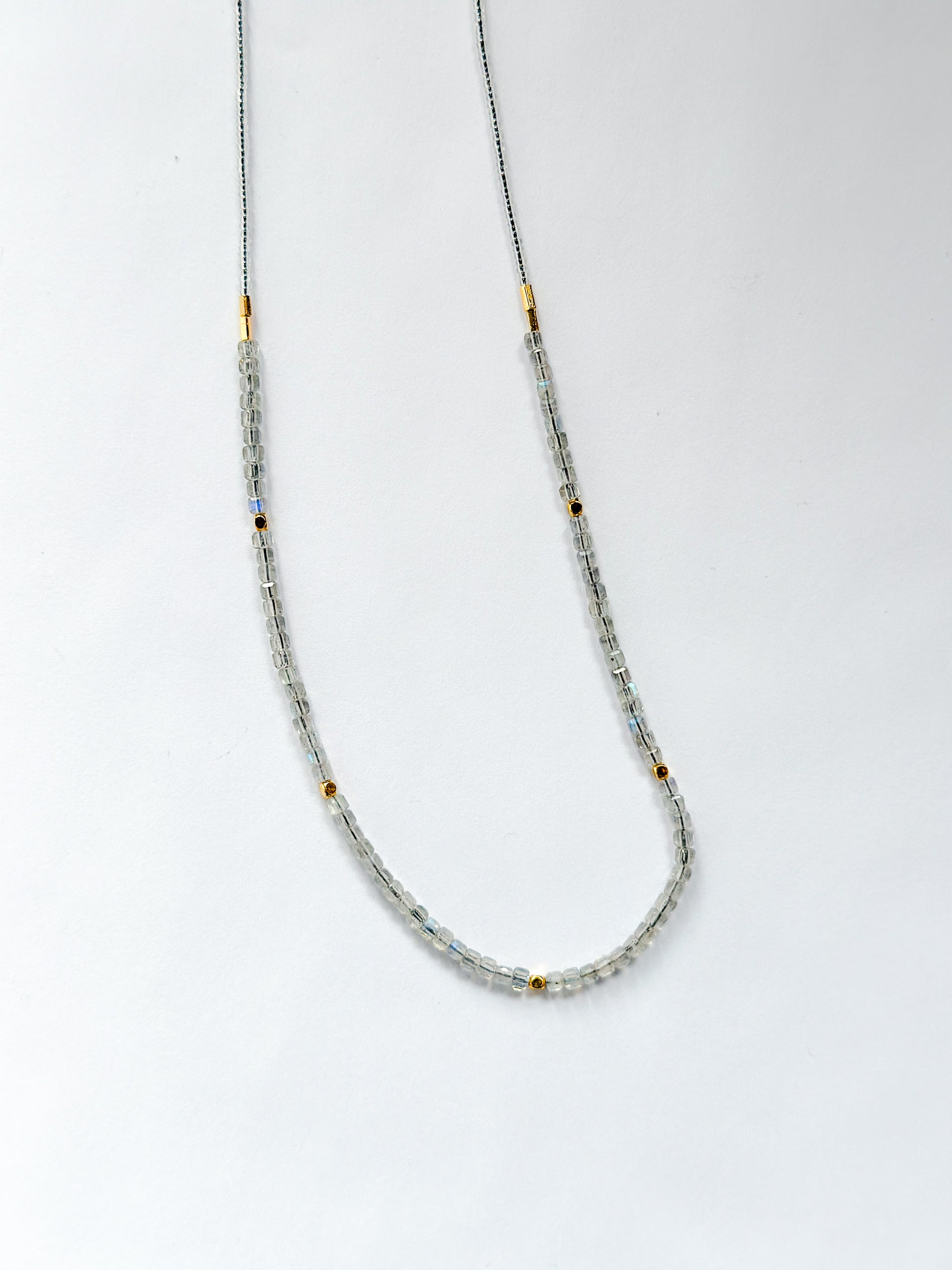 DEBBIE FISHER | Necklace of half Clear Glass Beads, half Clear seed beads, and Gold beads
