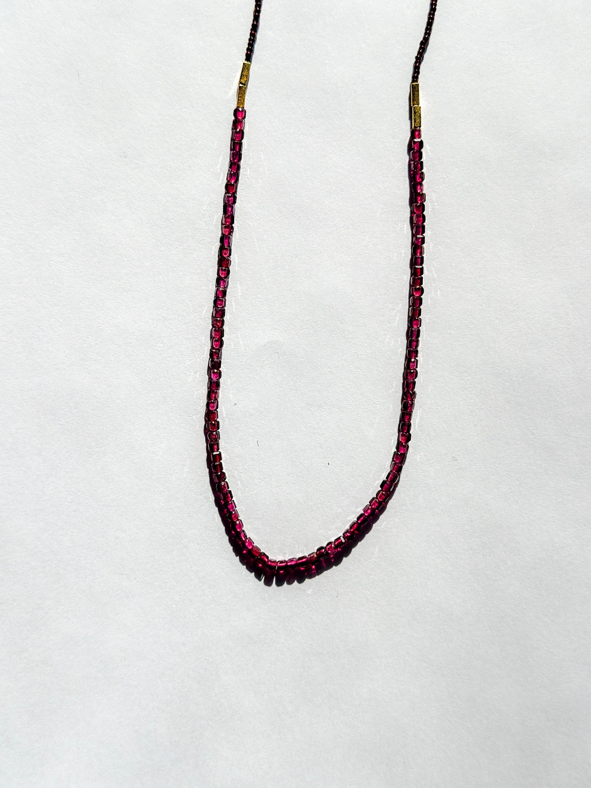 DEBBIE FISHER | Necklace of Dark Brown Seed, Gold Vermeil, and Garnet Beads
