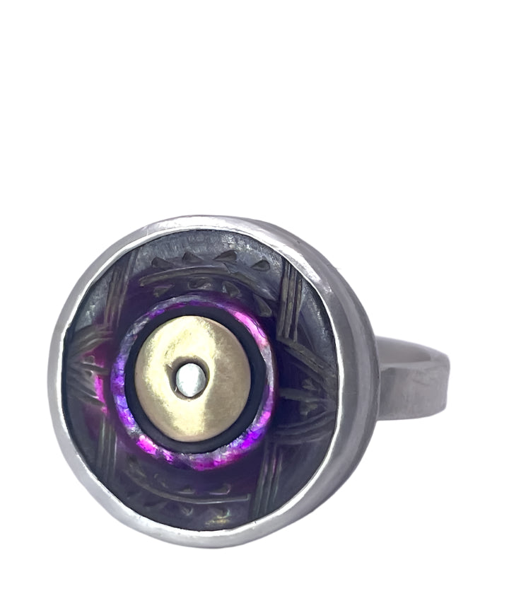 JADEWATER DESIGN | Fuchsia Carved Ring with Gold Fill and Silver Center