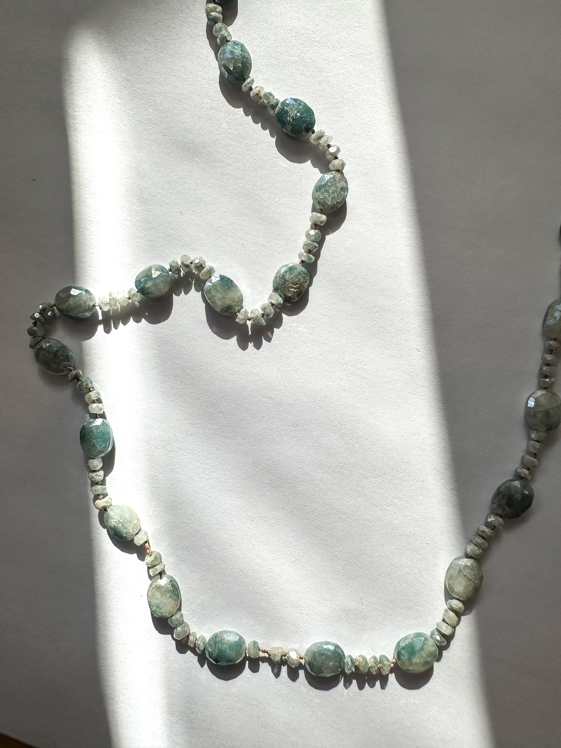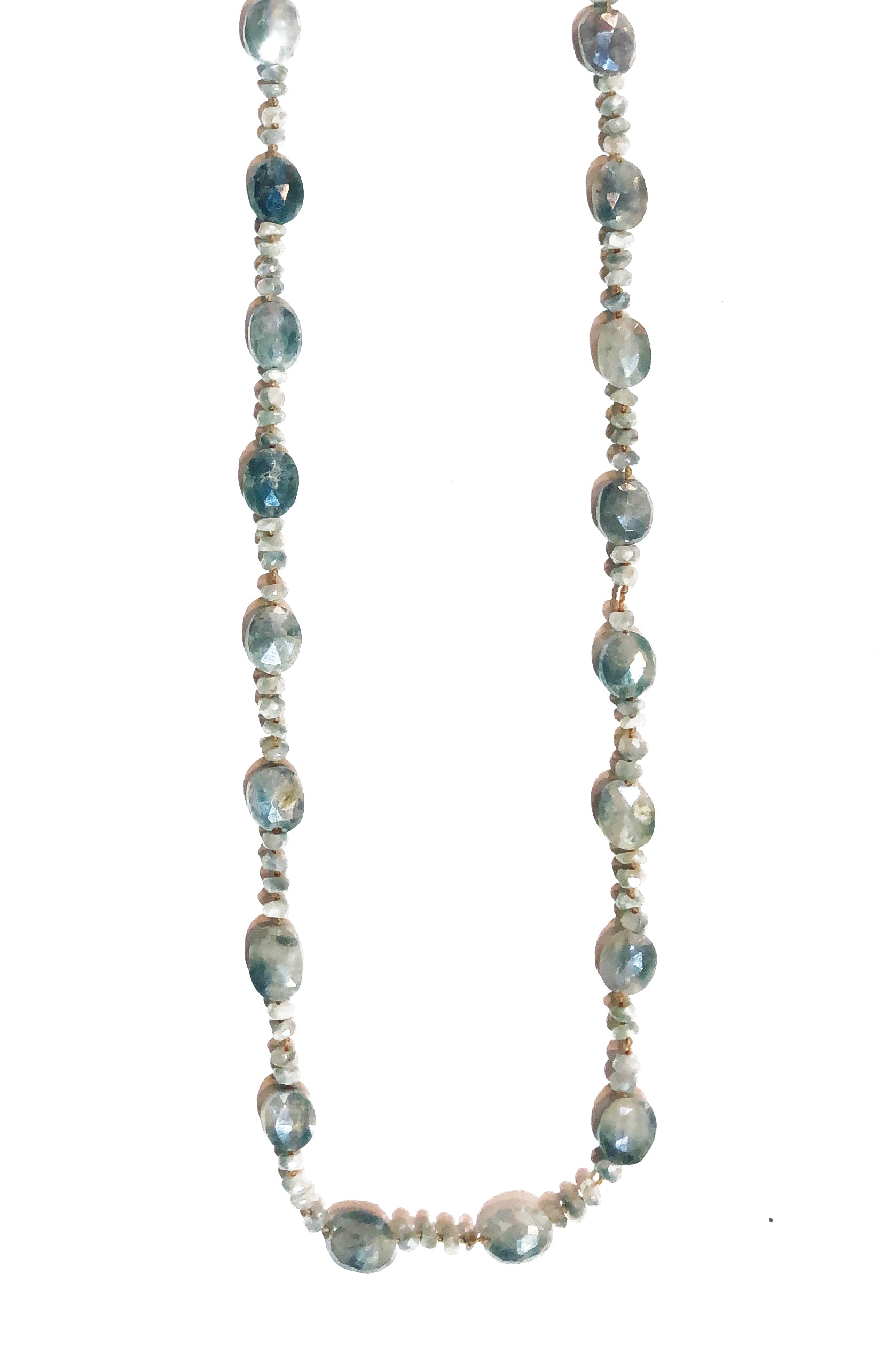 Knotted Tan Cord With Oval Faceted Blue Selvenite Necklace