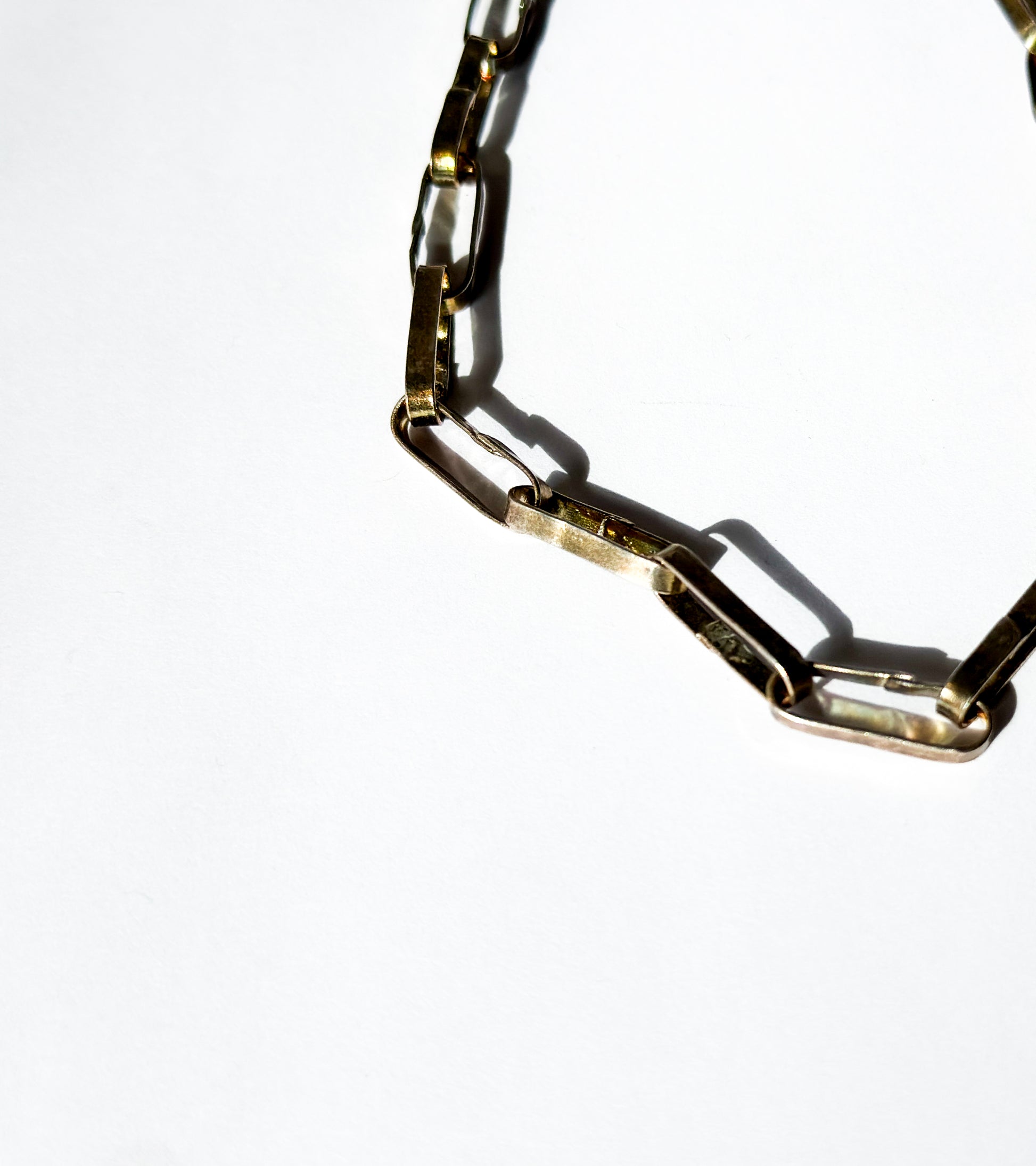 Constructed like the paper chains I used to make as a child, these chains are light and airy. Great for layering.