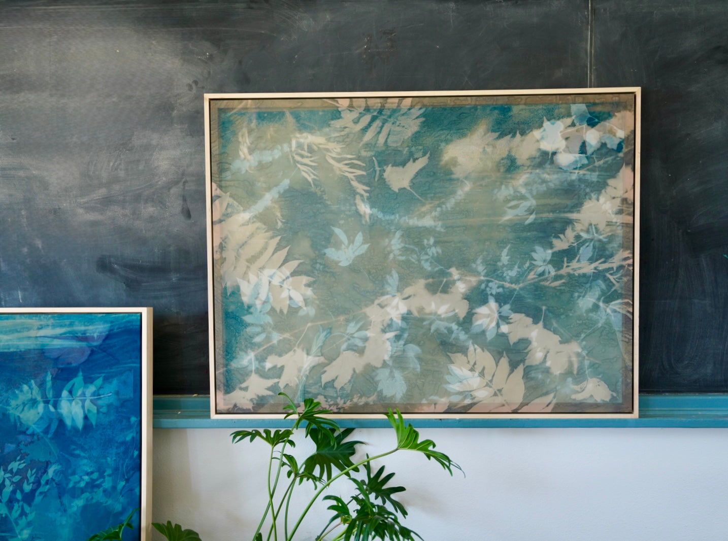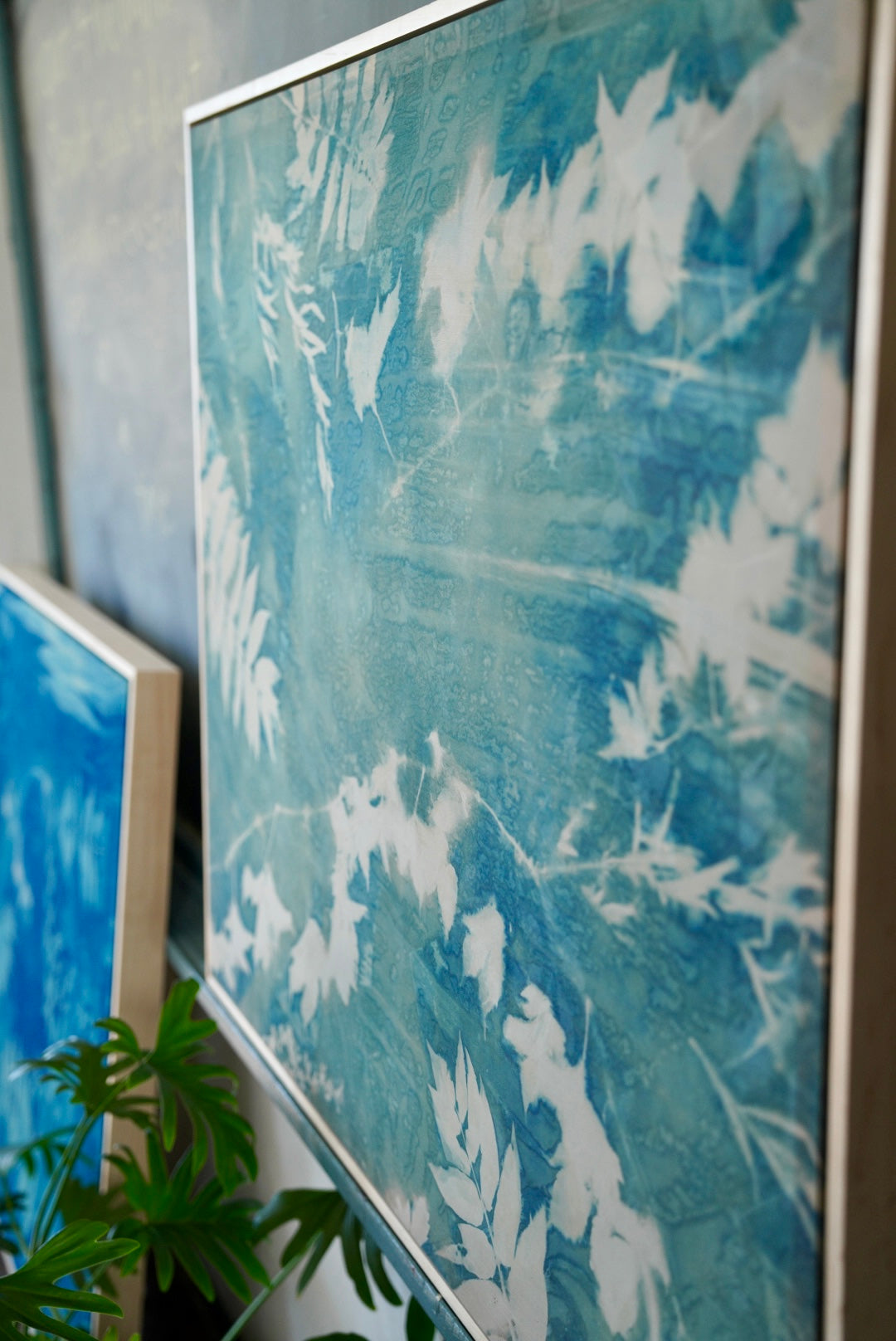 In her cyanotype work, sunlight acts as both collaborator and catalyst, imprinting organic forms onto hand-coated fabrics such as linen, cotton, and silk. Abbott often reworks these surfaces with additional materials, building layered compositions that shift with the viewer’s perspective and gradually reveal new details over time.