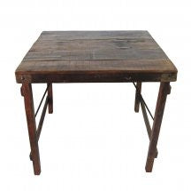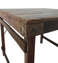 Reclaimed wood 2 top table with metal brace. Each table will differ in patina and condition and many will feature metal patches.