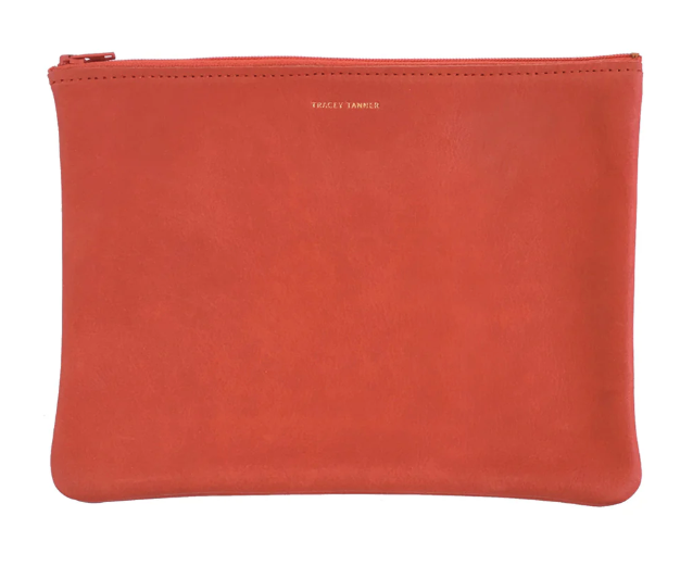 Leather flat zip-top pouch designed to hold your phone, wallet and cosmetics or as a sleeve for an iPad Mini or Kindle: Use it to organize your essentials in a larger bag or carry it alone as a clutch.
