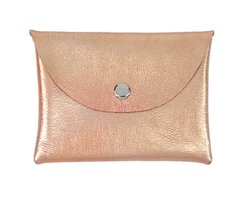 Leather flat pouch with a snap envelope closure. Great for carrying your cash, keys, credit cards and other small items. Perfect to throw in a tote or backpack or use as a simple wallet.