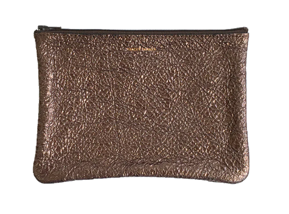 Leather flat zip-top pouch perfectly sized to carry your phone, cash, credit cards and/or cosmetics: Use it to organize your essentials in a larger bag or carry it alone as a clutch.